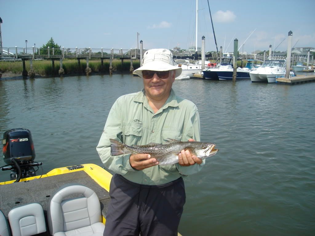 What a pleasure my charter today was. Bubba and Norm, from Michigan, fished real hard this AM, caught about 20-25 trout (Trout Tricks on 1/8th ounce jigheads), and kept five for supper. Great job, guys. Water is getting clearer, but the trout still haven’t really turned on. We were around fish all morning, probably had 100+ hits. I feel it’s gonna get better and better if the water will continue to clear. Bob