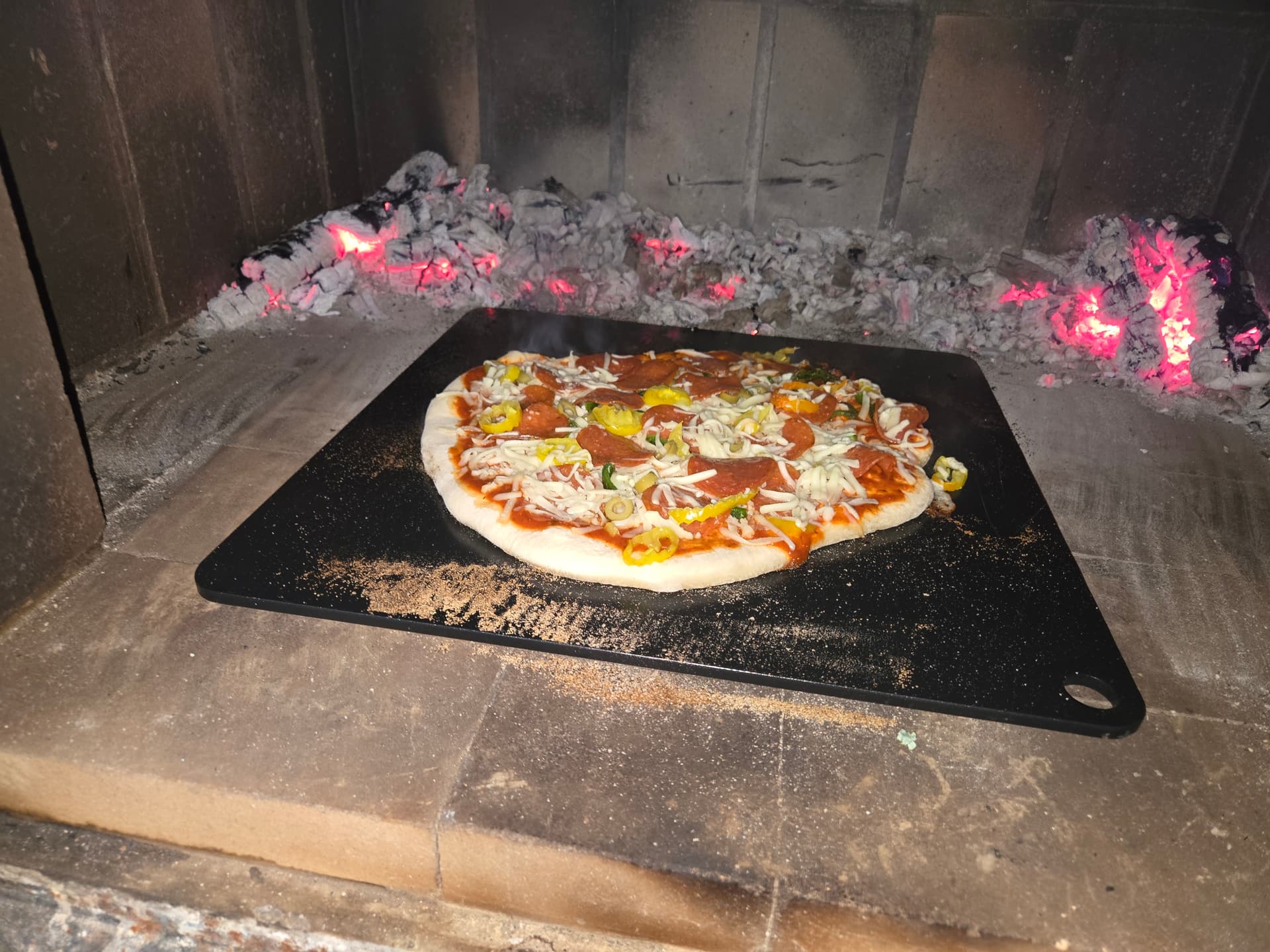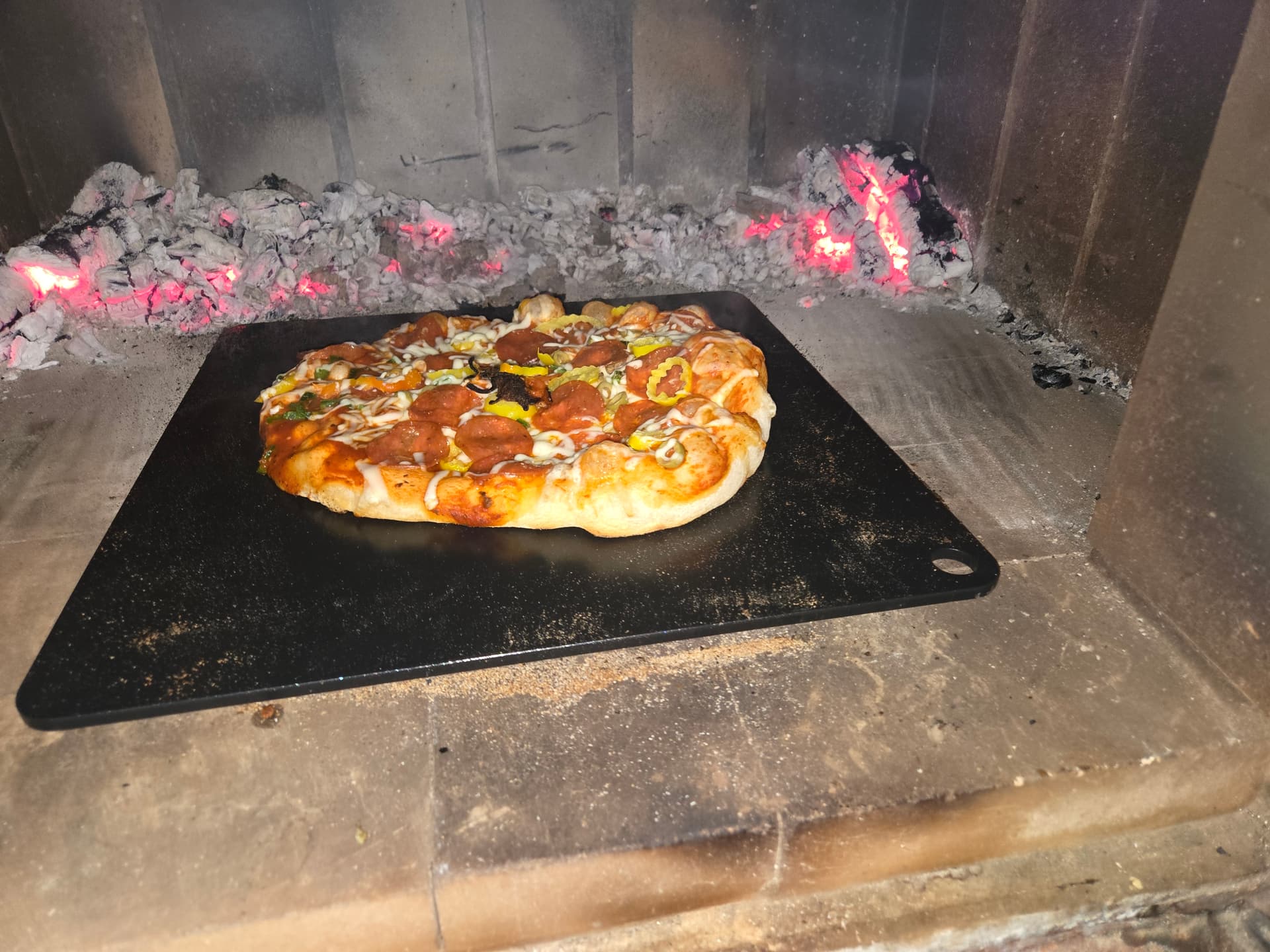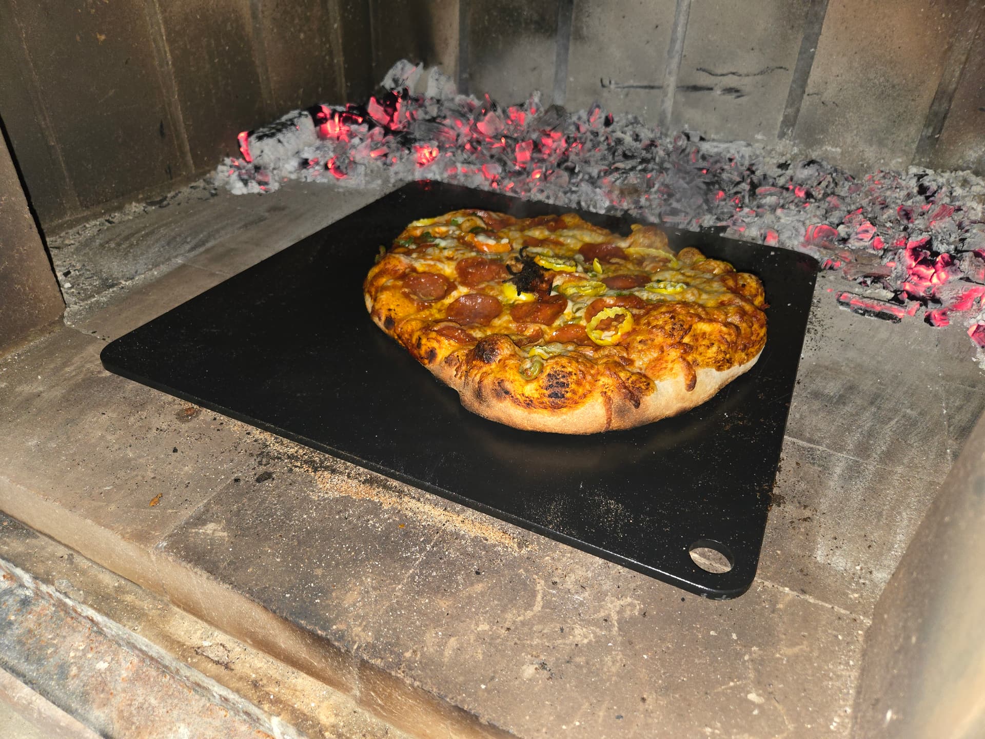 you bed up the coals in the front-center of the oven and get the floor really hot for pizza, like 800-900 degrees in there.