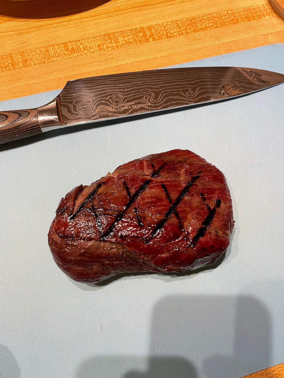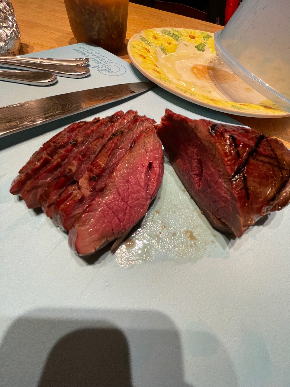 Tenderized 4hrs, slow smoked and reverse seared rare.
