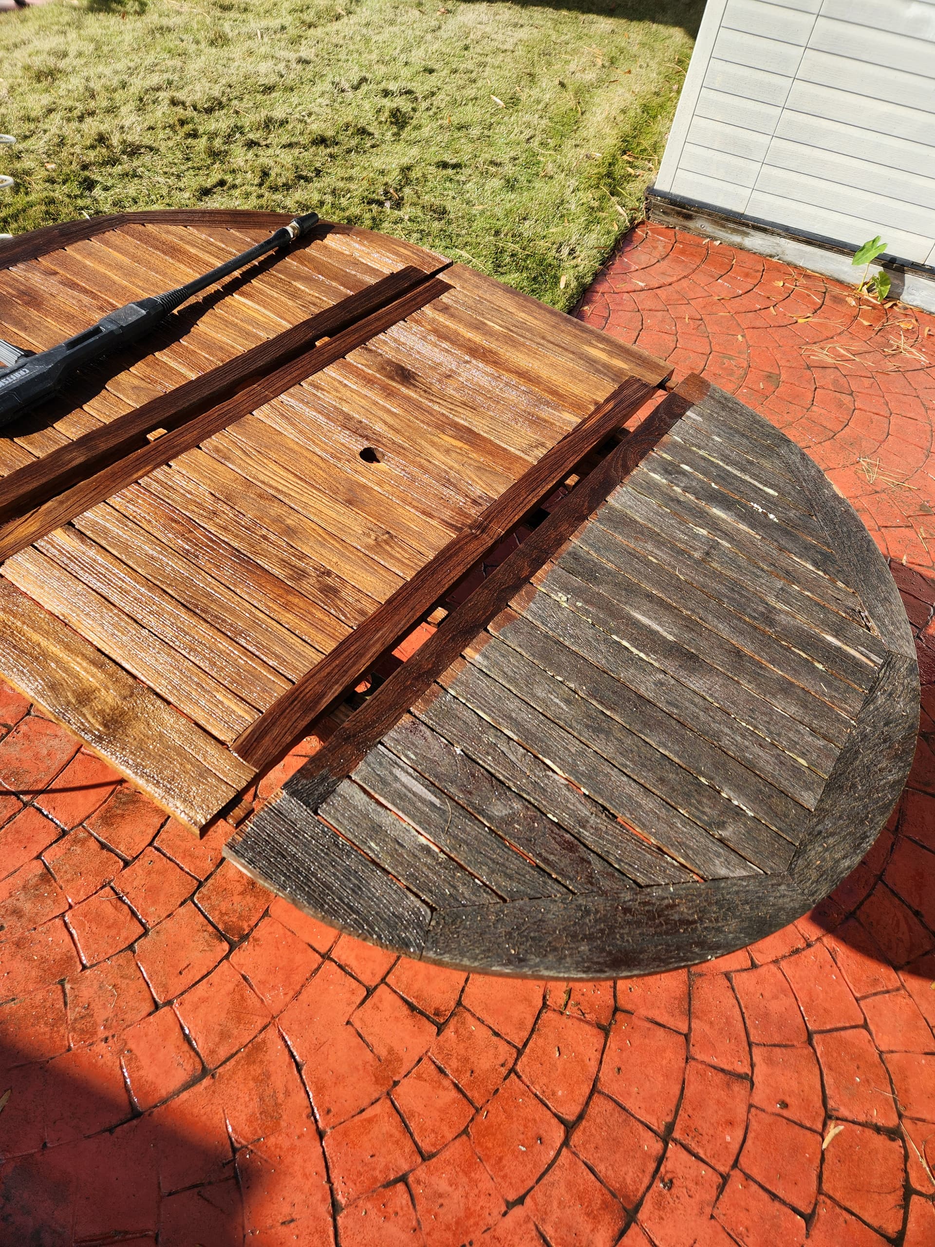 Pressure washing my FIL’s old patio furniture. He got it for free 15 years ago from a golf course that was throwing it away.