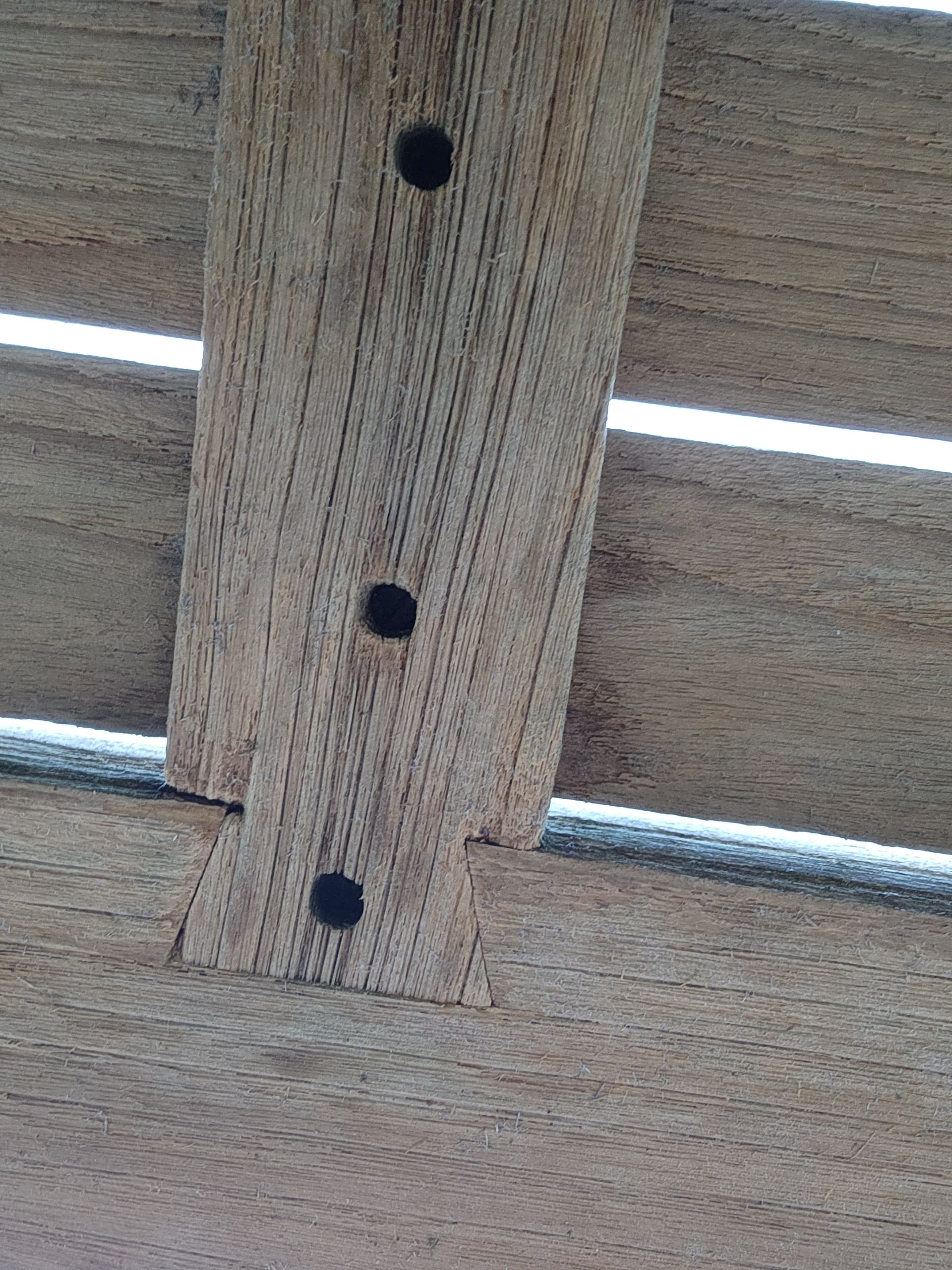 Turns out it’s teak, mortise and tenon, dovetail joints, dowels, etc. Still solid as a rock. Not sure how old, but at least 25-30 years.