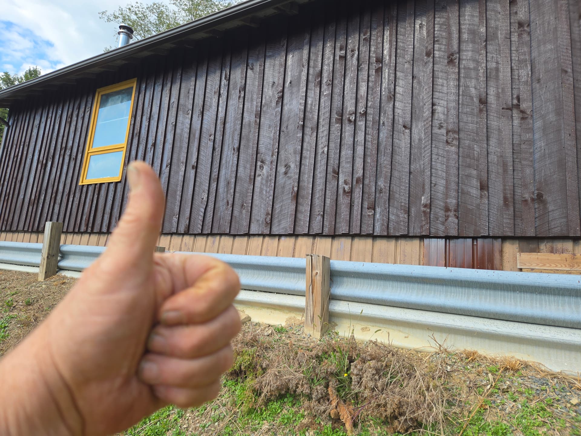 washing away my grief with 3 gallons of Australian Timber Oil hand brushed on the backside of the shed