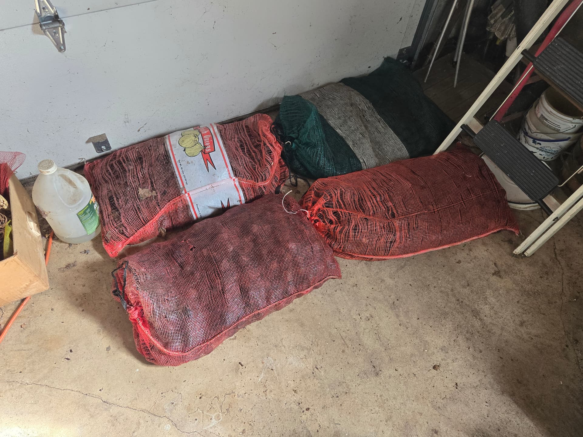 75 gallons ready to be hulled, and another 100 or so pounds already hulled and drying. Gotta remember and flip these sacks every other day for a few weeks.