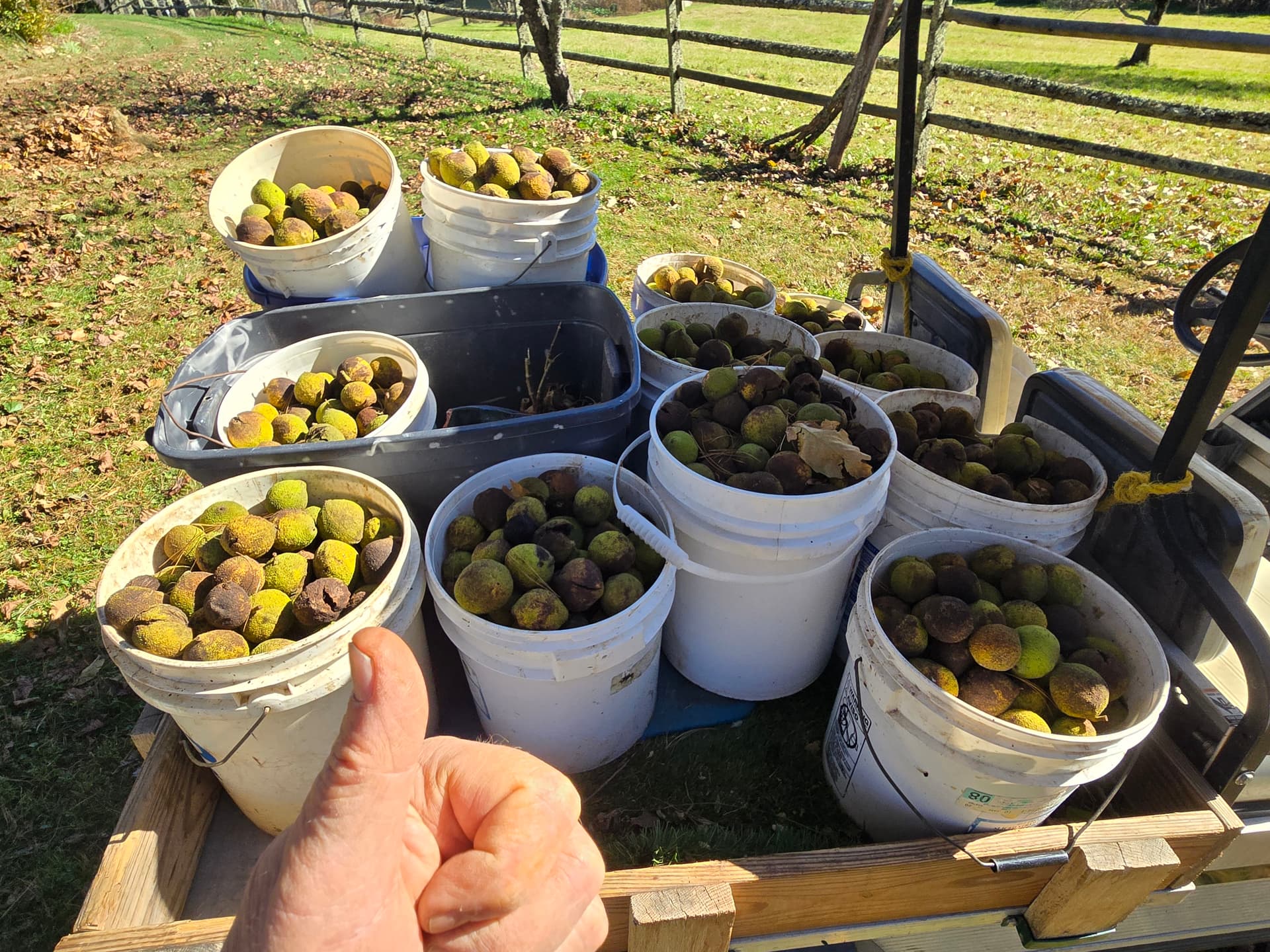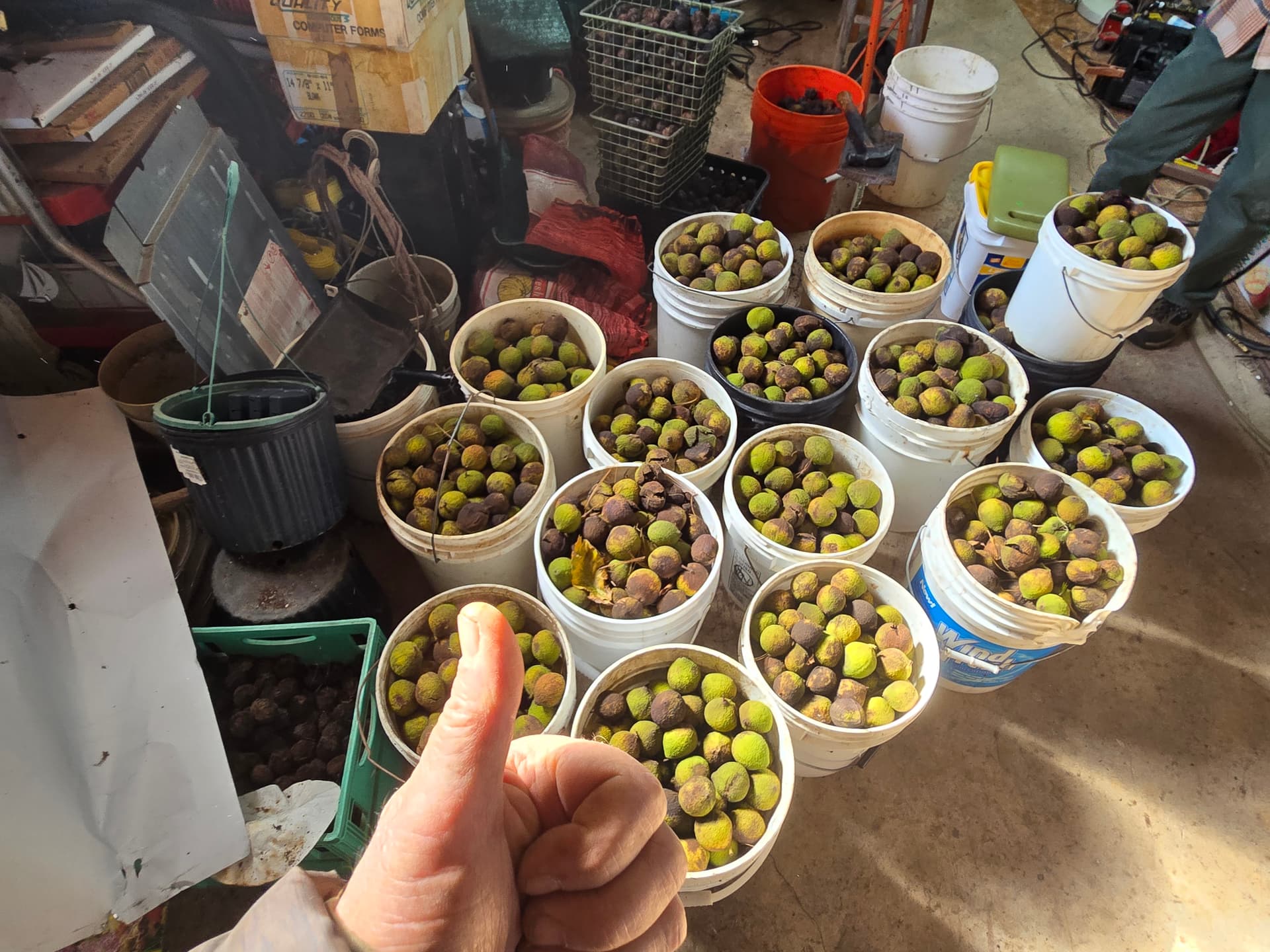 I spent some time today gathering nuts, some of you have had them in my special recipe brownies over the years.