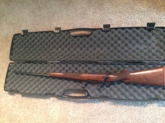 Winchester M70 Super Grade in 7mm Remington Magnum. Gun is in 98% condition. This is a pre-64 style CRF action when they brought it back. This gun is a collectable, there weren’t many of these made with the red butt pad and stamped New Haven, Conn., before they moved the factory to the FN plant in Columbia. Gun comes with Talley Lightweight base/rings and I’ll throw in 100rnds of 140grn Barnes TSX loads developed for the gun.